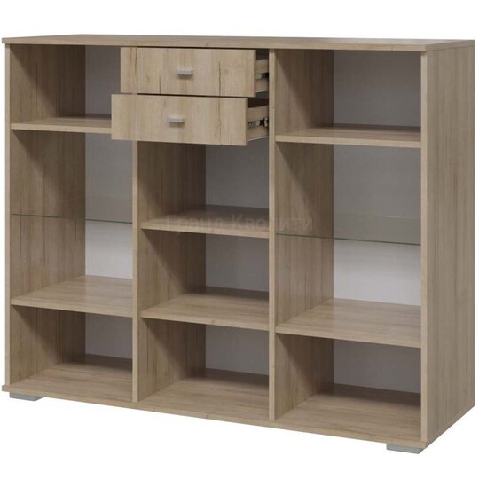 Тумба-комод 6-5605 Шервуд является гармоничным воплощением природных текстур, лаконичных форм, цвета и функциональности. Изделие предоставит дополнительное место для размещения посуды, книг, сувениров из отпусков, интересных статуэток и оригинальных предметов декора. Фотопечать поперечного среза дерева на стеклянных дверцах в сочетании с глянцевыми однотонными фасадами сохранят современные ноты, а витрины с полками для книг, открытая и закрытая ниши и выдвижные ящики обеспечат функциональность.