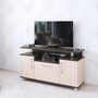 Тумба под ТВ 003С Росток имеет одновременно простой и интересный дизайн. ТВ панель разместится на отдельной подставке, внизу находятся вместительные шкафчики и ниша для ТВ аппаратуры.