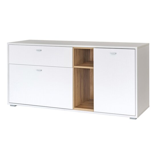 Комод Бэль - с двумя закрытыми секциями, выдвижным ящиком и двумя открытыми нишами в тонировке Дуб крафт золотой.
