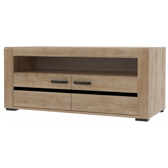 Тумба под ТВ Бьянка Росток оснащена 2 закрытыми и одной открытой нишами для хранения. Такая тумба в цвете дуб баррик  с плавными, лаконичными формами смотрится стильно и современно.