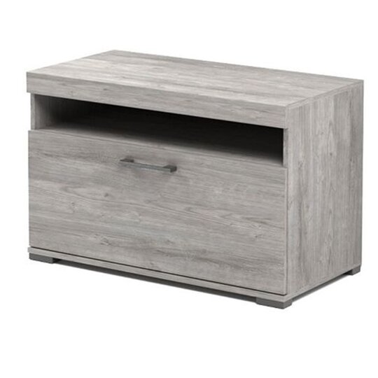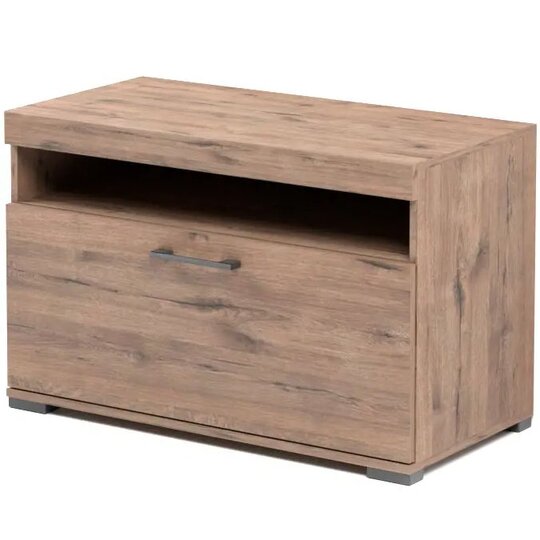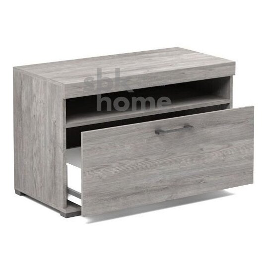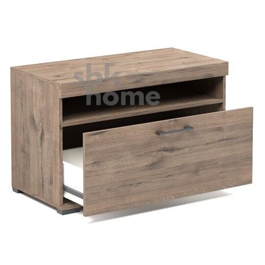 В тумбе располагаются ящик и открытая полка. Шариковые направляющие надежно удерживают ящик при открывании. Сочетается с надстройкой к тумбе Д-6 из этой коллекции.