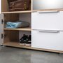 Обувница-выполнена в современном минималистичном стиле. Тумба оснащена одной двухрядной кассетной секцией для обуви с откидывающейся дверкой. Стильные металлические ручки и серые опоры дополняют лаконичный дизайн тумбы.