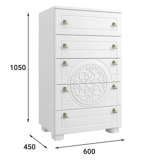 Комод Монблан МБ-35К станет настоящим украшением комнаты в вашем доме. Пять достаточно вместительных выдвижных ящиков пригодятся для хранения одежды, постельного белья, аксессуаров, косметики и мелких предметов. Сверху на комоде вы сможете поставить вазу с красивыми цветами, несколько фотографий и оригинальные статуэтки. Толщина столешницы: МДФ 25 мм. Фурнитура: ящики с телескопическими направляющими полного выдвижения. Высота опоры 50 мм.