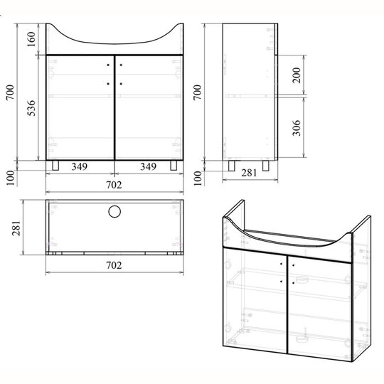 • корпус/фасады: влагостойкий ЛДСП/МДФ;