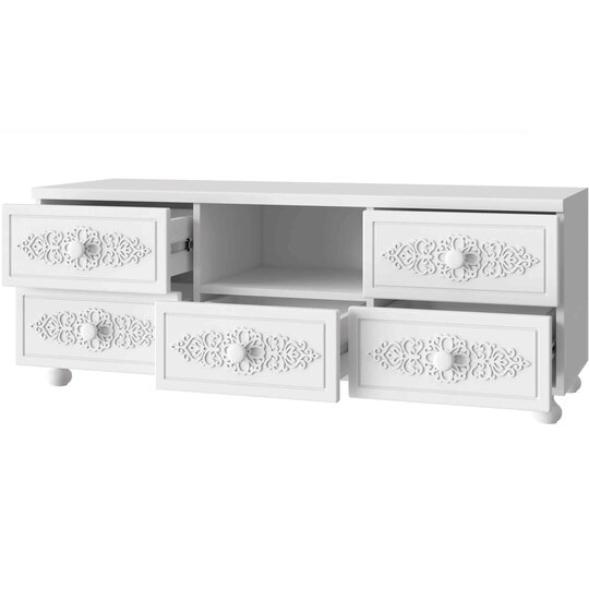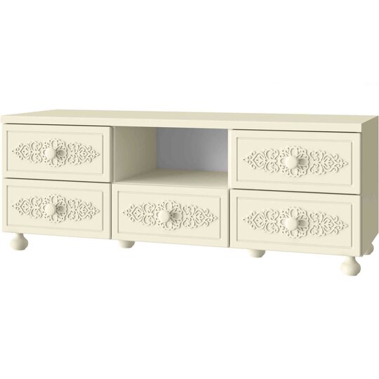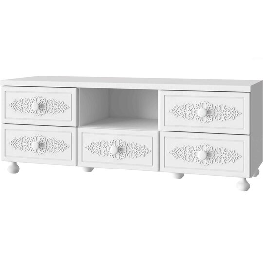 Тумба под ТВ Ассоль АС-56 оснащена пятью выдвижными ящиками и нишей для различной аппаратуры. Такую модель можно использовать как тумбу под телевизор, так и просто как тумбу для различных вещей. Рекомендуем комплектовать с другими модулями, например, АС-53К и АС-57. Фурнитура: петли с доводчиками. Высота опоры 65 мм. Мебель изготовлена из качественной ламинированной ДСП 16 мм. В оформлении фасадов МДФ применяется уникальная технология нанесения объемного узора 3D.