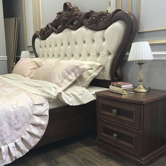 Производитель внимателен к деталям — это подчеркивается великолепной пластикой линий и мягким патинированием. Кровать смотрится эстетично, нарочитые украшения отсутствуют. Интерьер с мебелью Афина выглядит как единая композиция — стильно и гармонично.