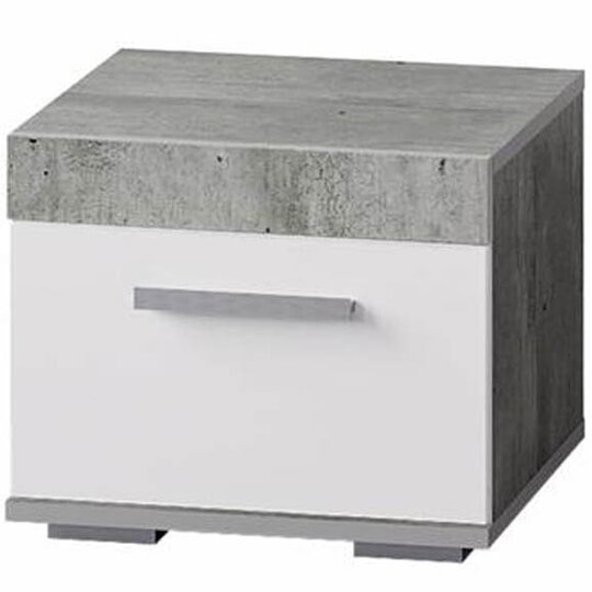 Отличный выбор для спальни – прикроватная тумба Инстайл. Белый фасад придает модели свежести и легкости, сочетание с цветом метрополитан грей делает тумбу очень современной, в выдвижном ящике, дополненным удлиненной ручкой  геометрической формы, можно хранить все необходимые вещи.