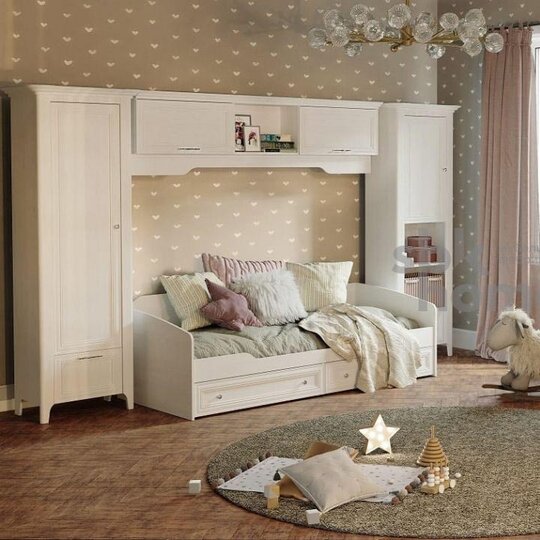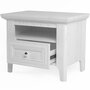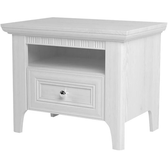 Прикроватная тумба дополнена открытой полкой и ящиком. Шариковые направляющие надежно удерживают ящик при открывании. Высота ножек 110 мм.