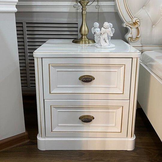 Утонченные элементы, роскошная обивка, витиеватые накладки доставят эстетическое наслаждение своим владельцам. Белый цвет мебели позволяет визуально увеличить пространство спальни, подчеркнуть важные детали, добавив в пространство легкости и света.