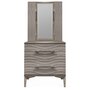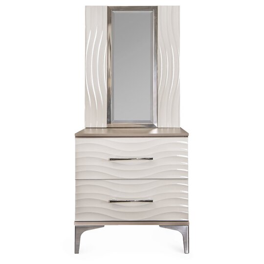 Тумба прикроватная Gravita с зеркалом- красивый и функциональный предмет мебели для спального гарнитура. Коллекция мебели для спальни Гравита (Gravita) выделяется стильным сочетанием цвета корпусов серый камень с глянцевыми белоснежными рельефными фасадами, обилием зеркал, а также хромированными деталями. Тумба оснащена двумя выдвижными ящиками. Максимально эффектно прикроватные тумбы смотрятся с дополнительными панелями, украшенными зеркалом.