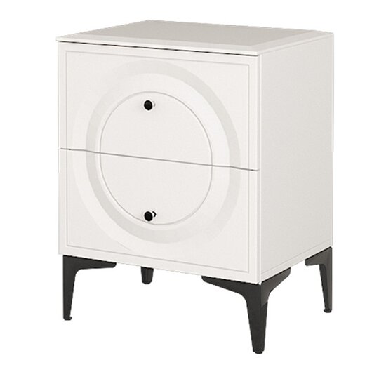 Тумба прикроватная Валенсия-одной из отличительных черт которой является круг, представленный фрезеровкой на фасаде. Фасады выполнены из МДФ с матовой ПВХ-плёнкой.