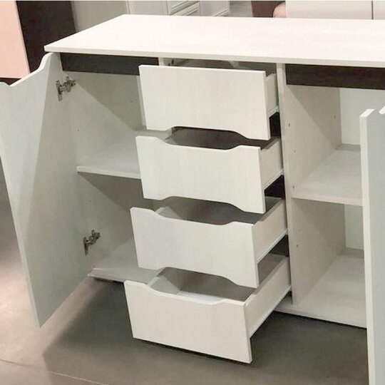 Тумба — настоящая изюминка для сдержанного современного интерьера, а геометрия фасада подчеркнута черным декором, добавляет изделию глубины и смотрится весьма необычно. Модель очаровательна и универсальна, в ее дизайне нет ничего лишнего.