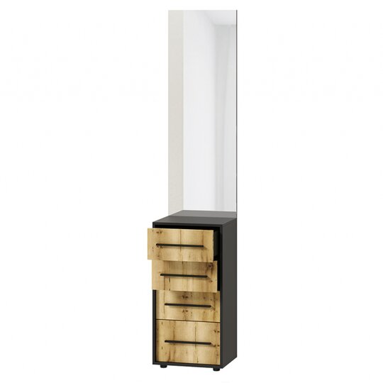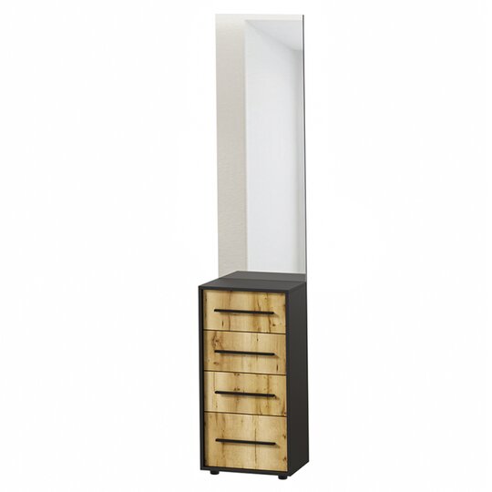 Тумбу с зеркалом Аэлита Росток понравится своим цветовым решением, текстурой ЛДСП с глубоким тиснением под натуральный шпон и функциональностью. Модель оснащена четырьмя выдвижными ящиками, куда можно убрать бижутерию и прочие женские аксессуары.