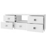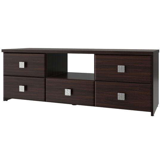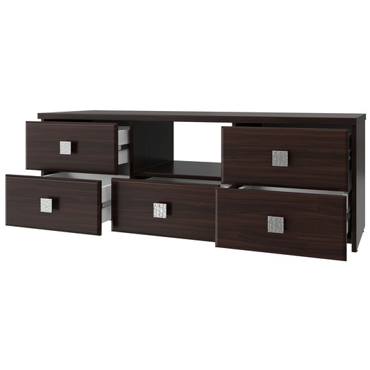 Тумба для ТВ Изабель ИЗ-54К будет отличным вариантом для современного интерьера. В тумбе расположены пять выдвижных ящиков и ниша для аппаратуры или книг. Столешница выполнена из ЛДСП 25 мм, дно ящиков двп 3 мм. Фурнитура: металлизированные квадратные ручки, телескопические направляющие полного выдвижения.