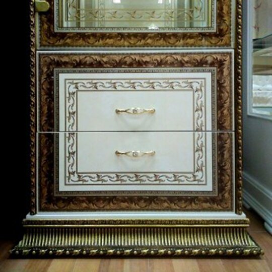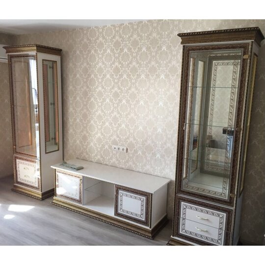 Малая гостиная Палермо, выполненная в бежевом цвете с золотистой отделкой, является самим олицетворением роскоши и богатства. Стоит отметить, что именно такое цветовое сочетание является трендовым в классическом дизайне интерьера. Фасад и все внешние элементы выполнены из произведённой в Италии плиты, облицованной пленкой ПВХ, в цвете «беж глянец». Каркас и все внутренние элементы выполнены из ламинированной плиты, отделка фасадов - термопечать.
