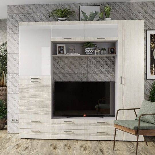 Модульная гостиная Амелия – современная гостиная в светлых тонах. Большой выбор модулей позволит воплотить Ваши представления о гостиной.