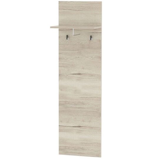 Настенная вешалка подходит для установки в небольшой прихожей. Модель не занимает много места, при этом позволяет аккуратно повесить на крючках повседневную верхнюю одежду, а на полочке — хранить головные уборы или коробку с сезонными аксессуарами. Сочетается с тумбой под обувь ПМ-7 из этой коллекции.