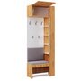 Вешалка комбинированная «Оскар» оснащена мягким сиденьем, закрытой полкой-антресолью, открытой вешалкой с крючками, комплектом открытых полок и сеткой для обуви. Вашей одежде, сезонным аксессуарам и той обуви, которую вы носите чаще всего, точно найдётся место. Все основные элементы сделаны из ЛДСП, с имитирующим древесную текстуру декором. Банкетка обита стойким к истиранию текстилем.