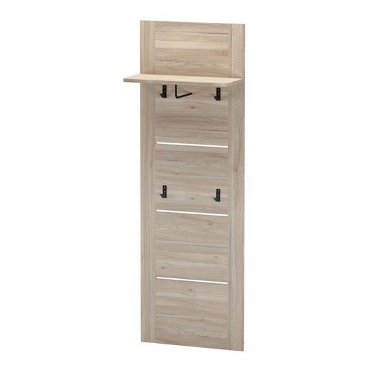 Настенная вешалка Юта не занимает много места, при этом позволяет аккуратно повесить на крючках повседневную верхнюю одежду, а на полочке — хранить головные уборы или коробку с сезонными аксессуарами.