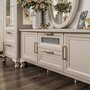 Утонченные элементы, роскошная обивка, витиеватые накладки доставят эстетическое наслаждение своим владельцам. Бежевый цвет «мокко» мебели позволяет визуально увеличить пространство, подчеркнуть важные детали, добавив в пространство легкости и света.
