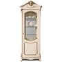Витрина одностворчатая Мона Лиза - роскошная витрина, выполненная в пастельной тонировке крем и оснащенная тремя стеклянными и одной полкой из ЛДСП за распашной дверцей с вставкой из прозрачного стекла. Витрина застеклена с трех сторон и оборудована внутренним зеркалом. Фасадное стекло декорировано изящным матированным узором. Витрина выглядит богато благодаря резному карнизу с лепкой из ППУ и ПУ, фасадам с фрезеровкой, изящным фигурным ножкам и металлической ручке цвета бронза. Возможно право- и левостороннее исполнение.
