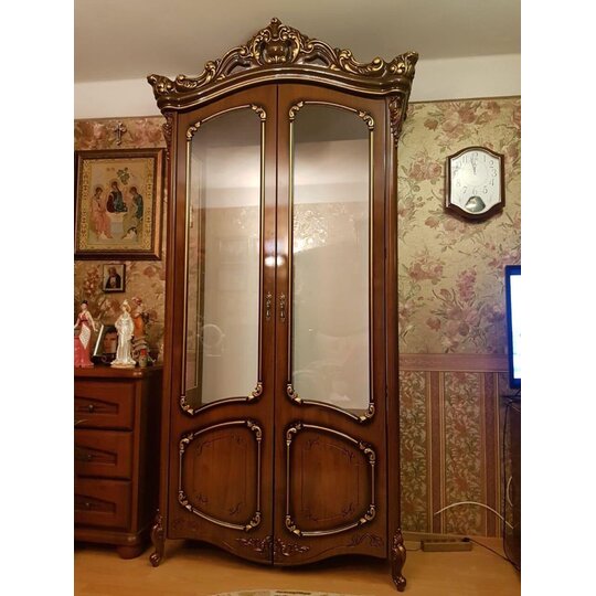 Шкаф-витрина угловой Элиза производителя Слониммебель предназначен для классического интерьера гостиной. Изящный дизайн подчеркивают стеклянные витрины и полочки, а также резные, позолоченные элементы фасадов. Комбинация различных элементов в одном предмете мебели значительно улучшает его функциональность. Шкаф-витрина угловой Элиза удобно использовать и как сервант для посуды, и как книжный шкаф. Данный предмет мебели станет настоящим украшением интерьера.