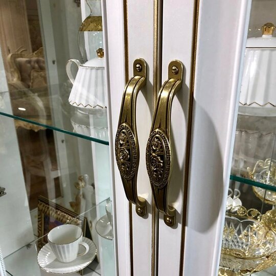 • материал изделия: корпус - ЛДСП, фасад - МДФ + ППУ, соответствующий всем стандартам качества. Декоративные элементы и накладки - ППУ и ПУ, класс экологичности Е1 (полностью безопасна). Декоративные элементы, фасады, накладки покрыты золотой патиной и матовым лаком;
