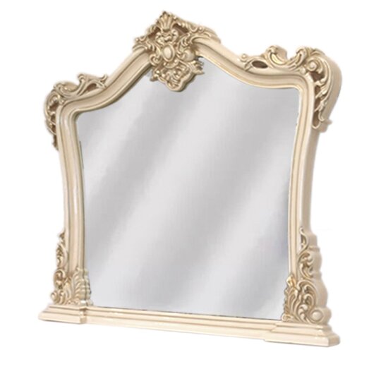 Зеркало Джоконда-роскошное будуарное зеркало фигурной пятиконечной формы в резной раме, декорированной патинированной фрезеровкой, витиеватой лепниной и великолепным медальоном.