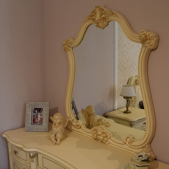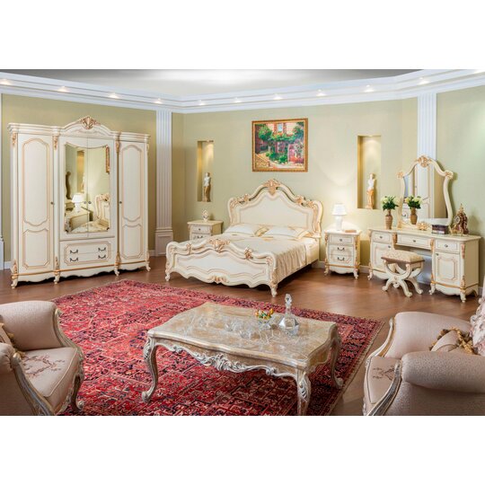 Спальня Мона Лиза - яркий пример роскошной классической спальни. Белоснежное исполнение всех элементов сделает комнату яркой и будет прекрасно смотреться в разных вариациях оформления интерьера. Особенно благородно мебель выглядит благодаря мягким и плавным линиям.