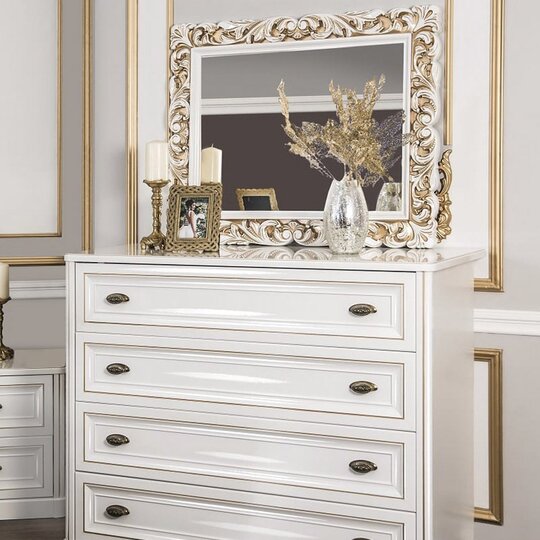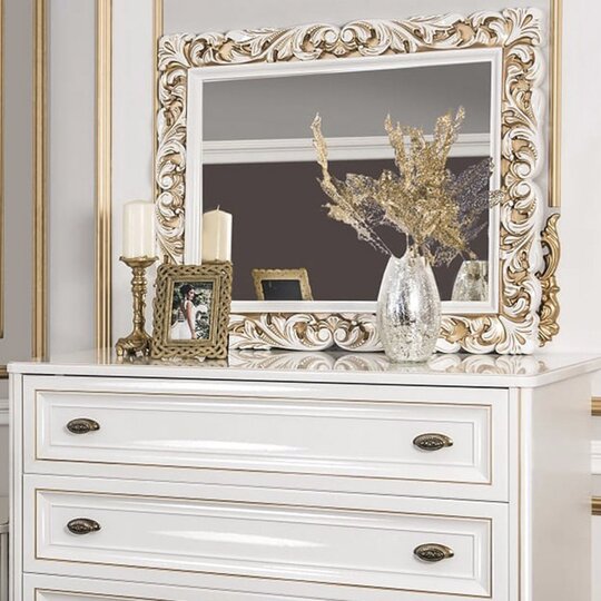 Утонченные элементы, роскошная обивка, витиеватые накладки доставят эстетическое наслаждение своим владельцам. Белый цвет мебели позволяет визуально увеличить пространство спальни, подчеркнуть важные детали, добавив в пространство легкости и света.