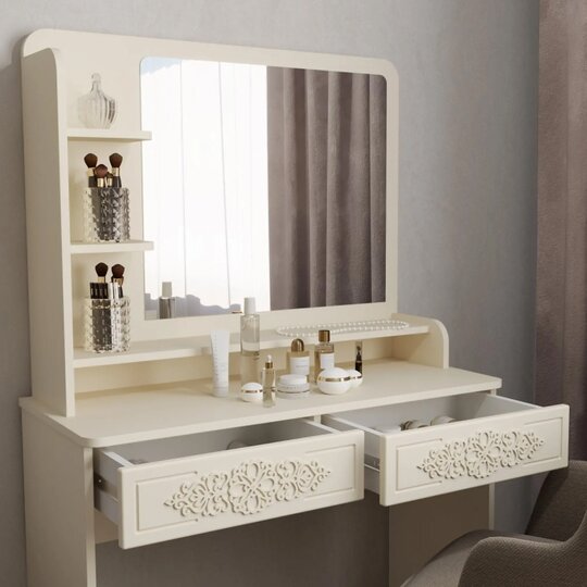 Полка с зеркалом ТН-2 была разработана для туалетного столика ТС-25К. Мебель изготовлена из качественной ламинированной ДСП 16 мм.