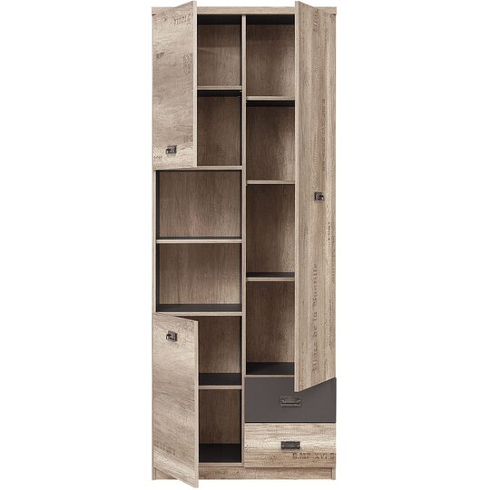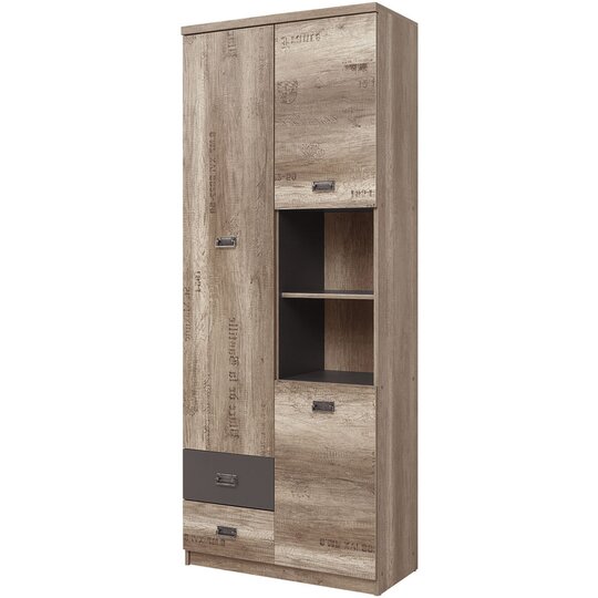 Ширина мм:805 Высота мм:2170 Глубина мм:400 Цвет:дуб каньон монумент/серый вольфрам Материал корпуса:ЛДСП Материал фасадов:ЛДСП с принтом Гарантия:12 месяцев Бренд:BRW