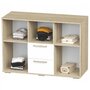 Многофункциональная тумба с двумя выкатными ящиками на шариковых направляющих и множеством открытых полок.