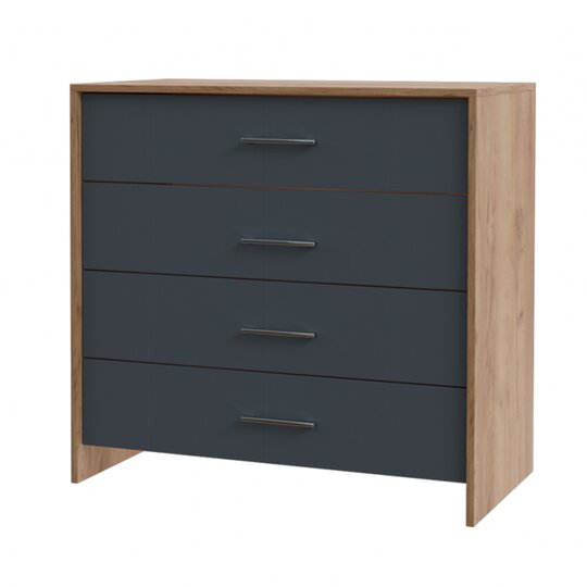 Комод из модульной серии Либерти. Полностью выполнен из ЛДСП 16 мм. Четыре больших выдвижных ящика на шариковых направляющих. На фасаде комода рейлинговые ручки. Обрамлен плитой 22 мм цветом дуб крафт золотой. Что делает очень привлекательным коллекцию.