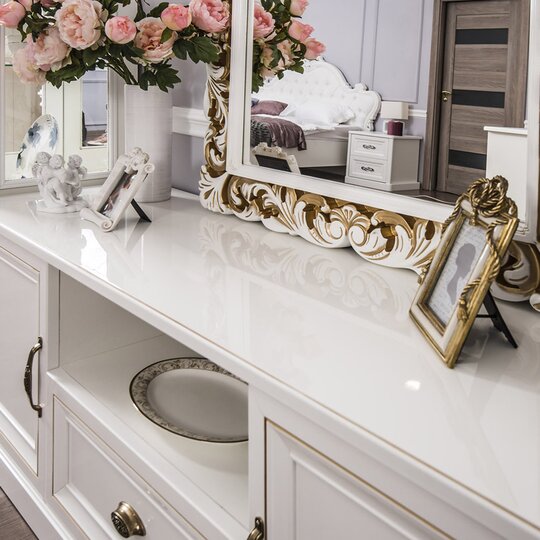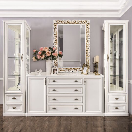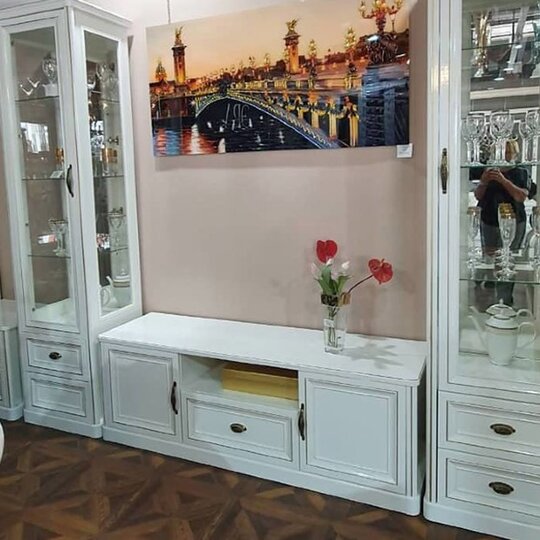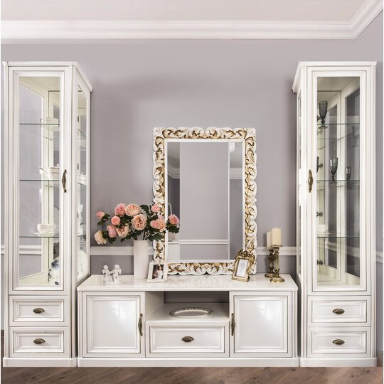 Мебель для гостиной Натали создает приятные ассоциации с изысканными столицами Европы. Изделия из коллекции придают обстановке комнаты оттенки особой роскоши и стиля. Входя в комнату с этой мебелью, сразу становится понятно, что у хозяев отменный вкус. Гостиная отлично подойдет для ценителей изысканности, классики и благородства. Мебель в светлых оттенках зрительно расширяет пространство, а золотая патина выделяет стилистические решения.