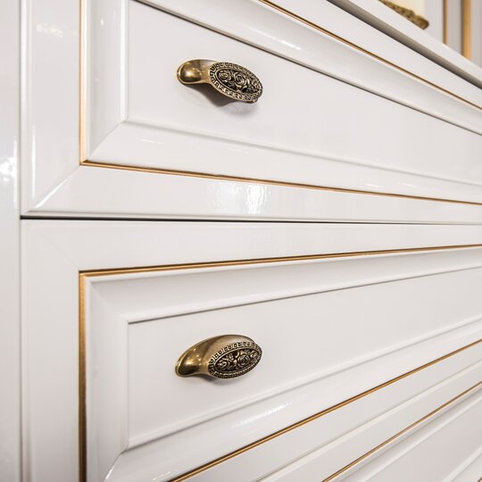 • Фурнитура - итальянская фирма Salice: ручка «кнопка» и «скоба» (металл - бронза)
