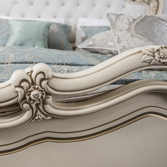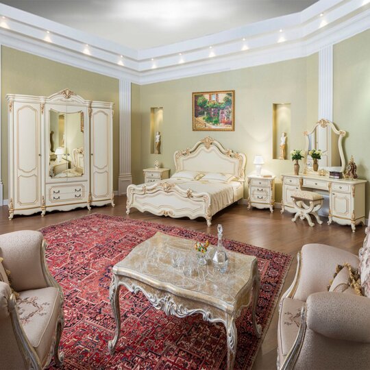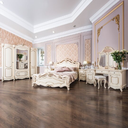 Спальня Мона Лиза - яркий пример роскошной классической спальни. Белоснежное исполнение всех элементов сделает комнату яркой и будет прекрасно смотреться в разных вариациях оформления интерьера. Особенно благородно мебель выглядит благодаря мягким и плавным линиям.