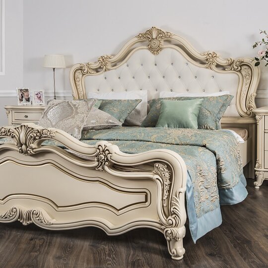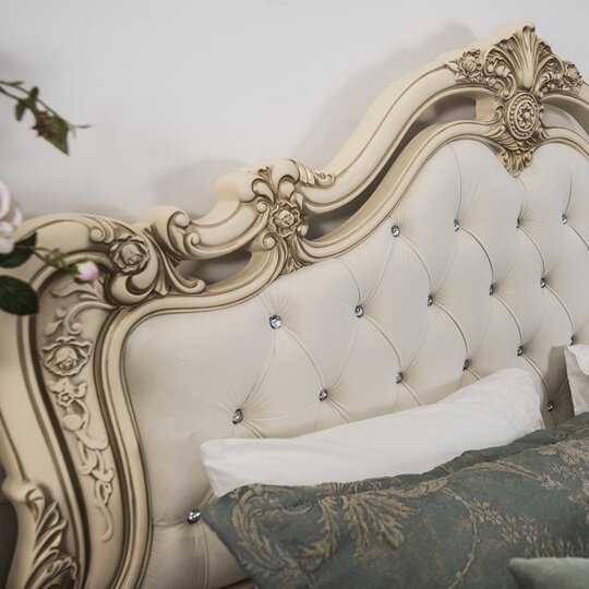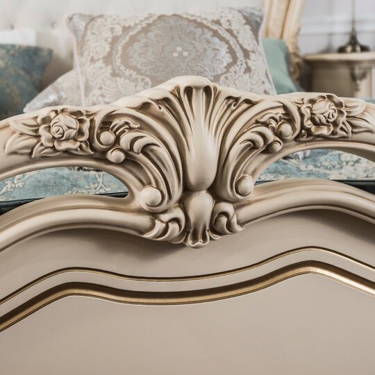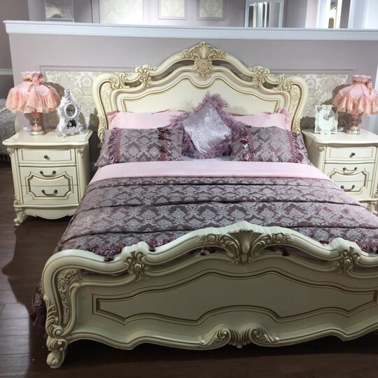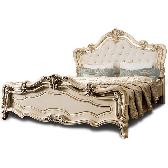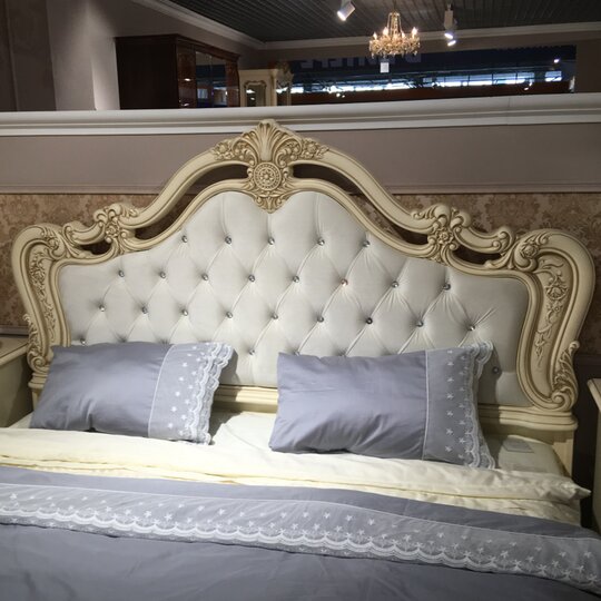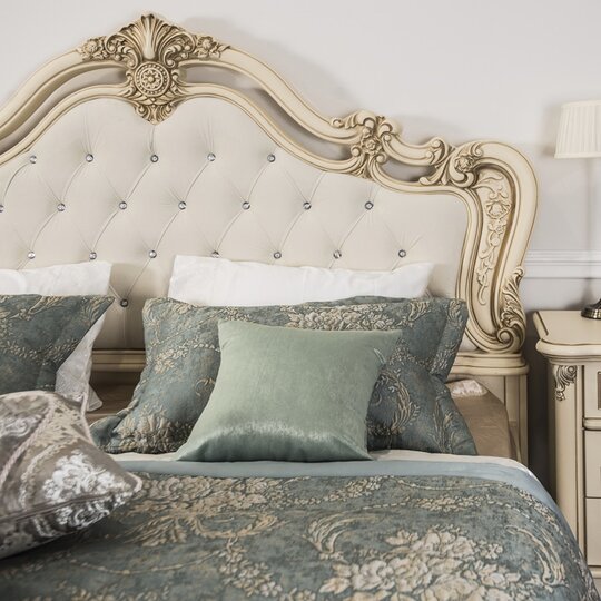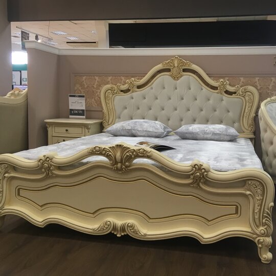 Кровать Мона Лиза-роскошная двуспальная кровать с фигурными изголовьем и изножьем, декорированными объемным резным обрамлением и высокохудожественной шелкографией. Кровать оснащена деревянным основанием с ламелями. Размер спальных мест: 180х200 мм. Высота царги позволяет комплектовать кровать матрасом высотой от 23 см (приобретается дополнительно). Посмотреть все матрасы можно здесь.