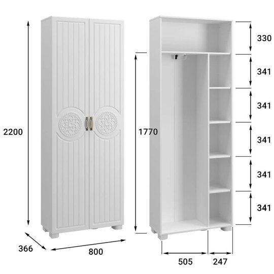 • размер Ш*В*Г/мм/: 800*2200*366.
