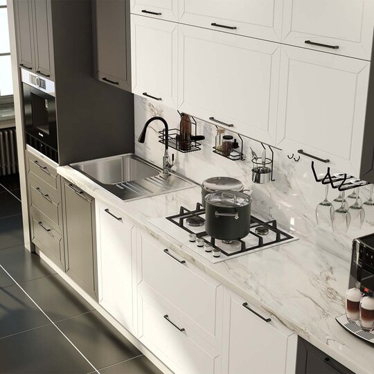 • Модули в корпусом в цвете Белый по умолчанию комплектуются петлями со встроенным доводчиком;