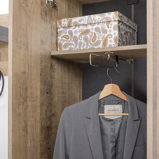 Модульная система в стиле лофт. Скрытые направляющие и четырёхшарнирные петли оснащены доводчиками, что обеспечивают повышенный комфорт и надёжность. Металлические опоры делают эту мебель надёжной, аутентичной и функциональной. Лицевая фурнитура с тем же покрытием придаёт мебели индустриальную эстетику. Металлические опоры делают эту мебель надёжной, аутентичной и функциональной.