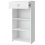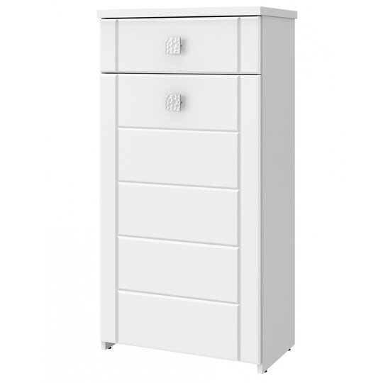 Тумба Изабель ИЗ-56К прекрасно впишется в интерьер уютной прихожей или комнаты. За распашной дверцей находятся полки, которые пригодятся для аккуратного размещения и хранения одежды или обуви. Небольшой выдвижной ящик создан для более мелких вещей. Сверху на тумбе вы сможете расположить ключи, бумажник, косметику и аксессуары для обуви. Модуль может быть собран "левым" или "правым". Столешница выполнена из ЛДСП 25 мм, дно ящика двп 3 мм. Нижняя полка установлена на полкодержатели, что позволяет увеличить отделение под высокую обувь. Фурнитура: металлизированные квадратные ручки, телескопические направляющие полного выдвижения, петли с доводчиками.