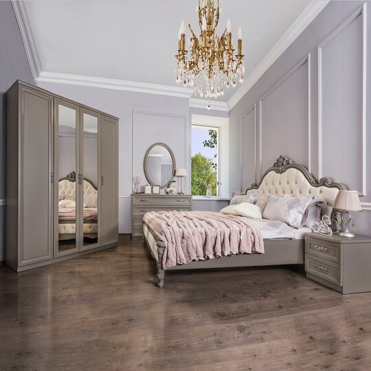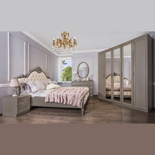 • Стиль – неоклассика (модное сейчас направление в дизайне), эта спальня подойдет к любому интерьеру;
