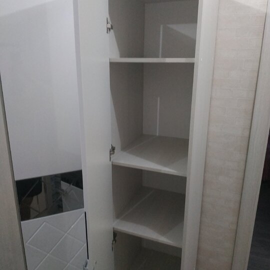 Ширина мм:810 Высота мм:2060 Глубина мм:810 Цвет:ясень анкор светлый/белый глянец Материал корпуса:ЛДСП Материал фасадов:МДФ Гарантия:12 месяцев Бренд:СтендМебель