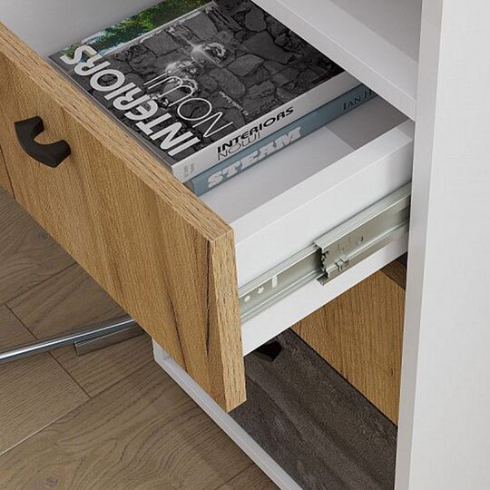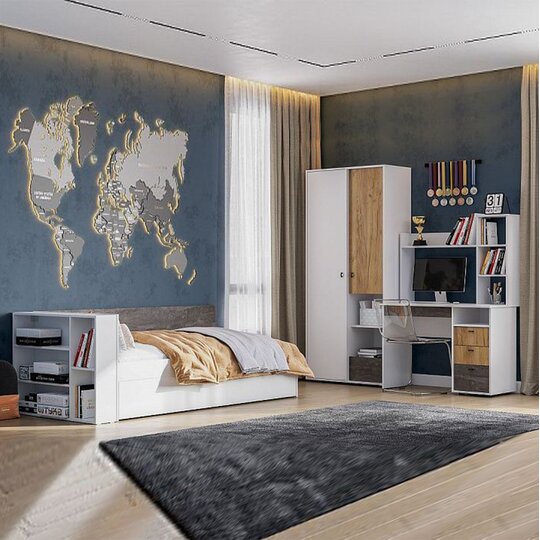Натуральная расцветка дуб Золотой в сочетании с белым текстурным понравится как мальчику, так и девочке.