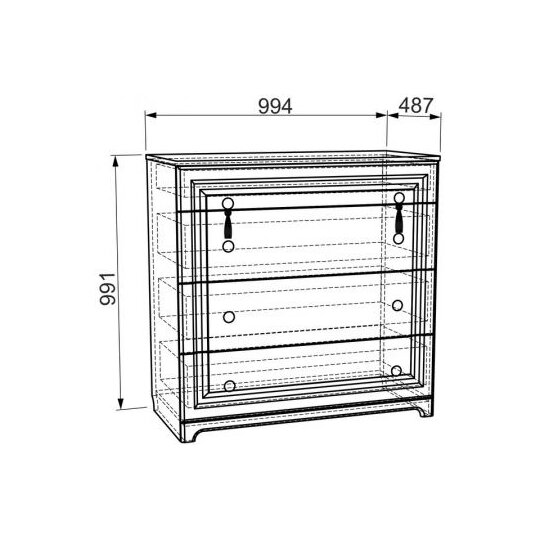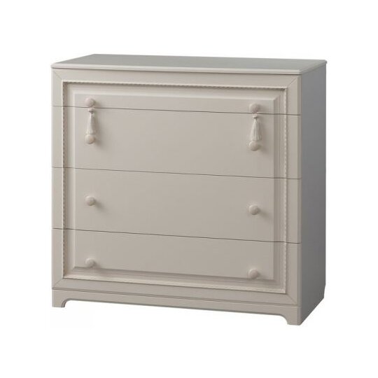 Комод Белла с четырьмя выдвижными ящиками. Верхний ящик по высоте меньше остальных, и предназначен для небольших предметов. Направляющие ящиков шариковые. Фасады из МДФ с ПВХ пленкой. Ручки из керамики и украшены кистями.