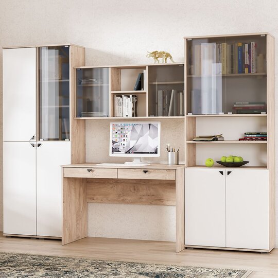 Модульная система Бостон предназначена для организации удобного и функционального рабочего пространства в современных интерьерах. Набор модулей позволяет собирать различные по размеру и стоимости компоновки, способные удовлетворить любой потребительский запрос. Минималистичная лицевая фурнитура выполнена в виде чёрных уголков-треугольников, которые чётко видны на белых фасадах и устанавливаются в специально выполненное углубление.