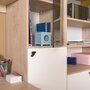 Витринные створки оформлены серым тонированным стеклом, открываются с помощью толкателей push.