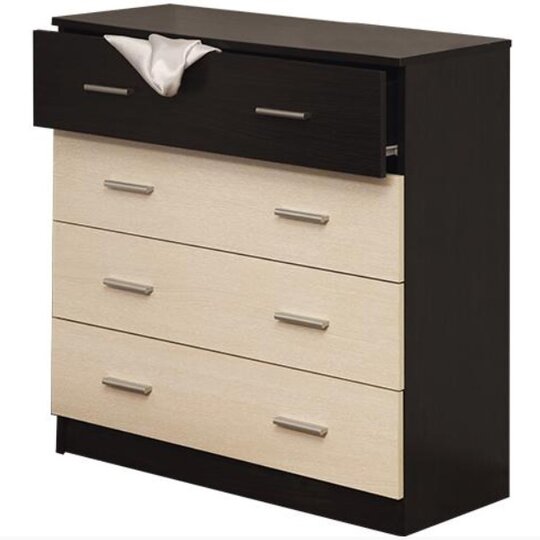 Комод Дуэт-1 стильный предмет интерьера, способный украсить практически любую гостиную. Несмотря на довольно простую конструкцию, он смотрится оригинально и привлекательно. Комод имеет четыре выдвижных ящика, в которых можно хранить одежду, постельное бельё и всевозможные мелочи. Три нижних ящика и дверца выполнены в приятном светлом оттенке, а верхний тёмный ящик идентичен по цветовому решению с корпусом, исключение составляет модель в однотонном исполнении.