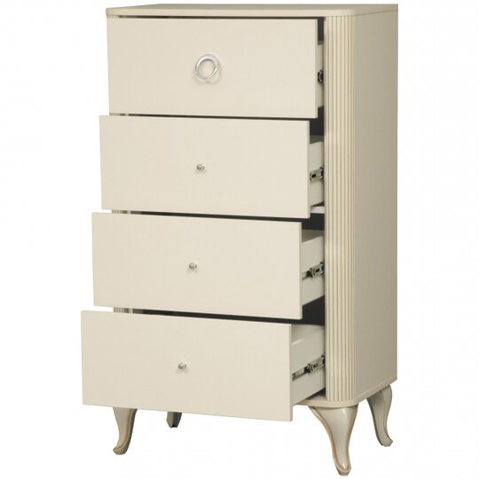 • прямой комод имеет четыре выдвижных ящика с использованием механизма полного выдвижения и плавного закрывания, дно ящика выполнено из ЛДВП в цвет корпуса;